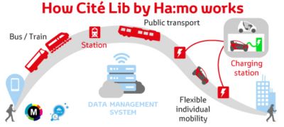 Cité Lib by Ha:mo бе осъществена, благодарение на партньорството на Toyota, град Гренобъл, столичния район Гренобъл-Алпи-Метропол, френската електрическа компания EDF и нейния филиал Sodetrel, както и местния оператор за споделяне на автомобили Cité Lib.